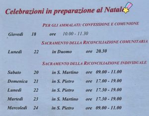 Cerchiamo allora di vivere i prossimi giorni per prepararci alla venuta di Gesù con la preghiera, l’aiuto reciproco, il perdono, la disponibilità, l’attenzione a chi è in qualsiasi situazione di bisogno, nel consolare chi soffre, è solo, …. Il nostro sguardo può certo farsi attento e le nostre mani premurose, se il nostro cuore si apre a Gesù che nascendo a Betlemme ha scelto per sé l’ultimo posto, che nessuno mai gli potrà togliere. Perché ciascuno di noi guardando a Lui possa consolarsi, possa prendere coraggio, possano riprendere il cammino della vita con speranza, con gratitudine, con amore e compassione verso chi incontra sulla sua stessa strada.